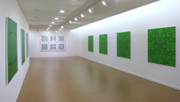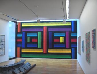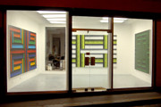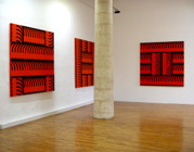 Les tableaux sont formés d’espace verticaux et horizontaux entrelacés, comme tissés les uns aux autres. Les couleurs participent de ce maillage par leurs rapports de contraste ou de dégradé. Il y a une mathématique de la couleur, un jeu d’occupation de l’espace où chaque élément doit trouver une place en fonction de ce qui l’entoure. Ce rapport de masse est fait de tensions parfois équilibrées, reposant sur des effets de symétrie et de répartition rationnelle, parfois en déséquilibre, une surface ayant pris le dessus sur la partie occupant l’essentiel du tableau. Mais une chose est sûre, ces états semblent ne jamais être que provisoires, comme si les permutations possibles se révélaient instamment nécessaires.