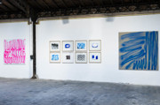 L’exposition « AÉROSOLTHÉRAPIE » présente divers travaux plastiques de quinze peintres ou dessinateurs utilisant tous l’aérosol ou l’ayant utilisé – Jules Olitski, Roland Topor et Larry Deyab, de la partie, sont décédés respectivement en 2004, 1997 et 2016. Cette utilisation s’avère d’une nature diverse, protéiforme. Certains artistes ont recours à la bombe de peinture de manière exclusive, soit pour tracer, soit pour recouvrir la toile ou le support du dessin. D’autres, plus parcimonieux ou plus aventureux, en usent en complément de manières de peindre ou de dessiner plus conventionnelles. Le spray, l’acte de vaporisation, vient dans ce cas enrichir à la fois leur palette, la composition et l’effet stylistique produit.