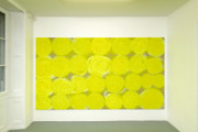 Pour la Villa du Parc, elle conçoit un projet sur mesure s’appuyant sur les variations de lumière naturelle et artificielle du lieu, jouant des effets rétiniens que celle-ci provoque en éclairant selon les heures les murs et un ensemble de peintures existantes et nouvelles. Dans l’œuvre de Renée Levi, “ le lieu concret, contingent, y est tangentiellement mis à contribution ”¹, écrivait avec justesse Christian Bernard, précisant ainsi comment l’artiste intègre les spécificités de l’espace afin d’optimiser les conditions de visibilité de son travail. C’est exactement dans cet état d’esprit qu’est pensée l’exposition à la Villa du Parc, dans laquelle les toiles exposées seront prolongées et relancées dans des muraux in situ plus ou moins perceptibles.