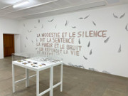 L’artiste associe volontiers des récits personnels au hasard des textes collectés, s’appropriant des solutions de mots fléchés, des lignes d’écritures à la plume, des correspondances ou de vieux cahiers d’écoliers.