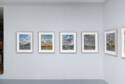 Les peintures d’Elisabeth Trenkwalder procèdent d’un déplacement, une route prise à un moment ou à un autre. Elles sont le fruit d’une projection du regard à travers le pare-brise ; elle, assise du côté passager, ne conduit pas ; à loisir son esprit fait l’aller-retour entre l’observation de la masse des nuages qui s’enroule et se déroule à l’horizon, et le ruban de végétation qui fouette la vision sur les bas-côtés.